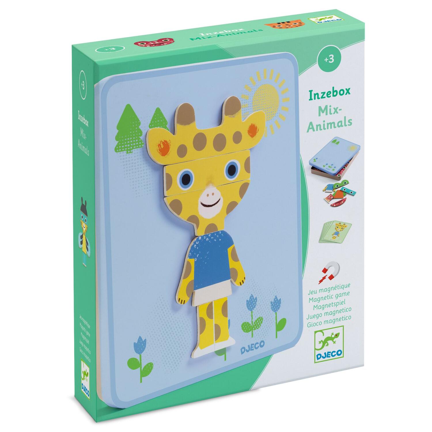 Il bambino o la bambina gioca con calamite di legno su una scatola di metallo sottile.Riproduce i 12 animali rappresentati sulle carte scegliendo il lato giusto della scatola.