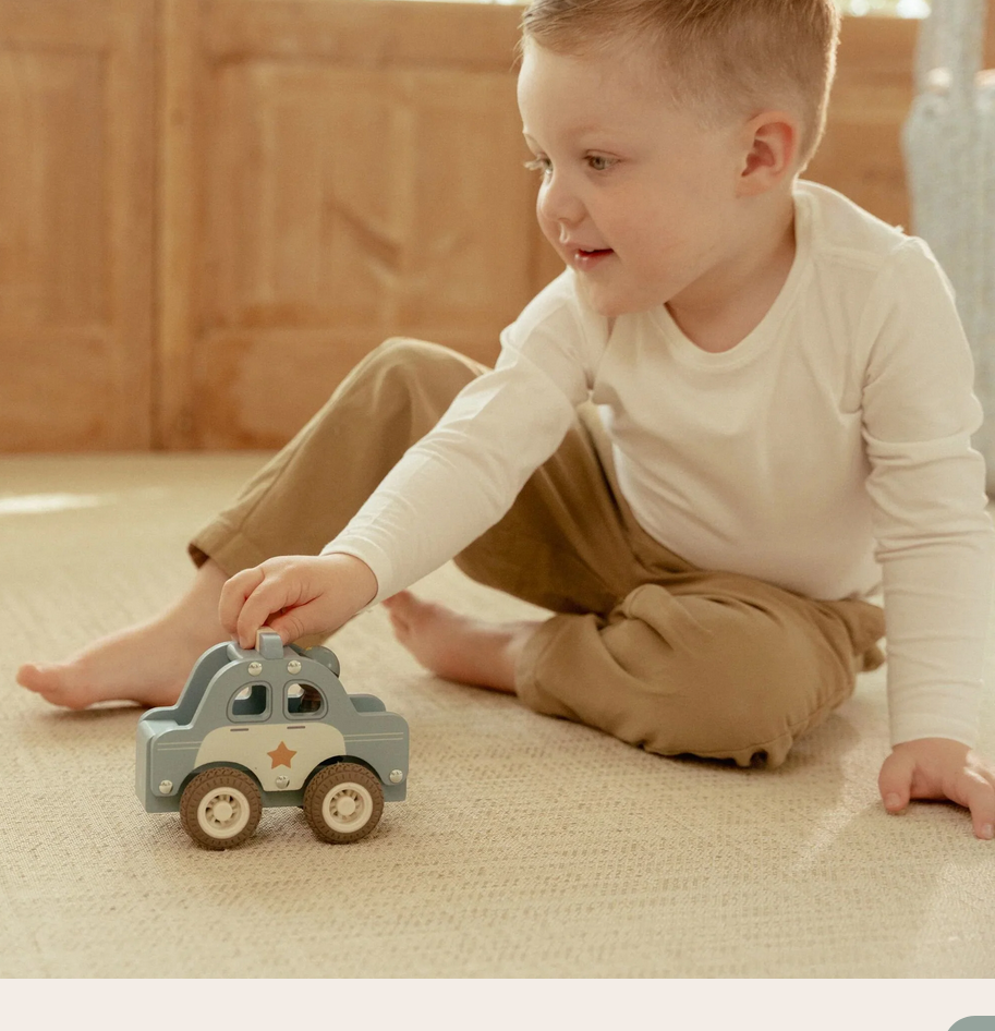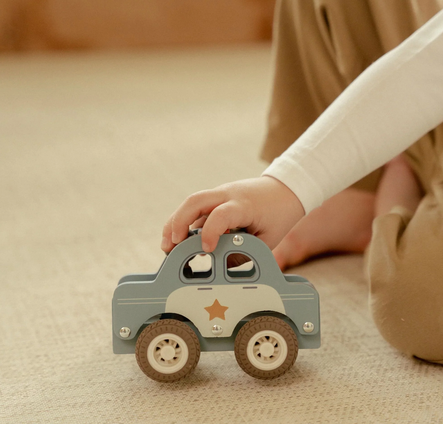 Emergenza? L'auto della polizia in legno corre veloce sulla scena del crimine! Con ruote in gomma per una guida fluida e un poliziotto coraggioso al volante, sei pronto a proteggere la città. Ricrea emozionanti inseguimenti e metti i criminali dietro le sbarre. Questa auto della polizia giocattolo è perfetta per i giochi di ruolo e si abbina perfettamente alla stazione di polizia in legno. Chi aiuterai oggi in città?