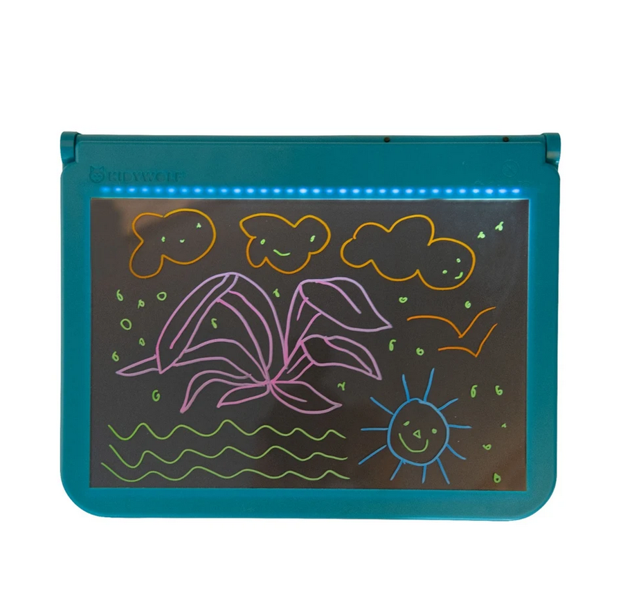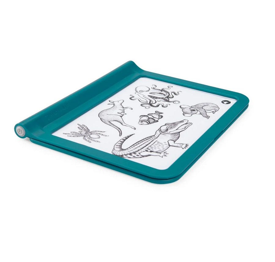 Portatile e luminosa, la tavoletta MOULIN ROTY Kidywolf invita a disegnare ovunque! Sul fronte si ricalcano gli animali della collezione Tout autour du monde (Intorno al mondo); sul retro si disegna con pennarelli fluorescenti per un magico effetto neon.