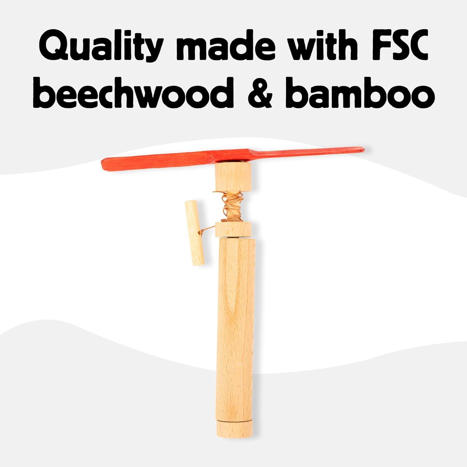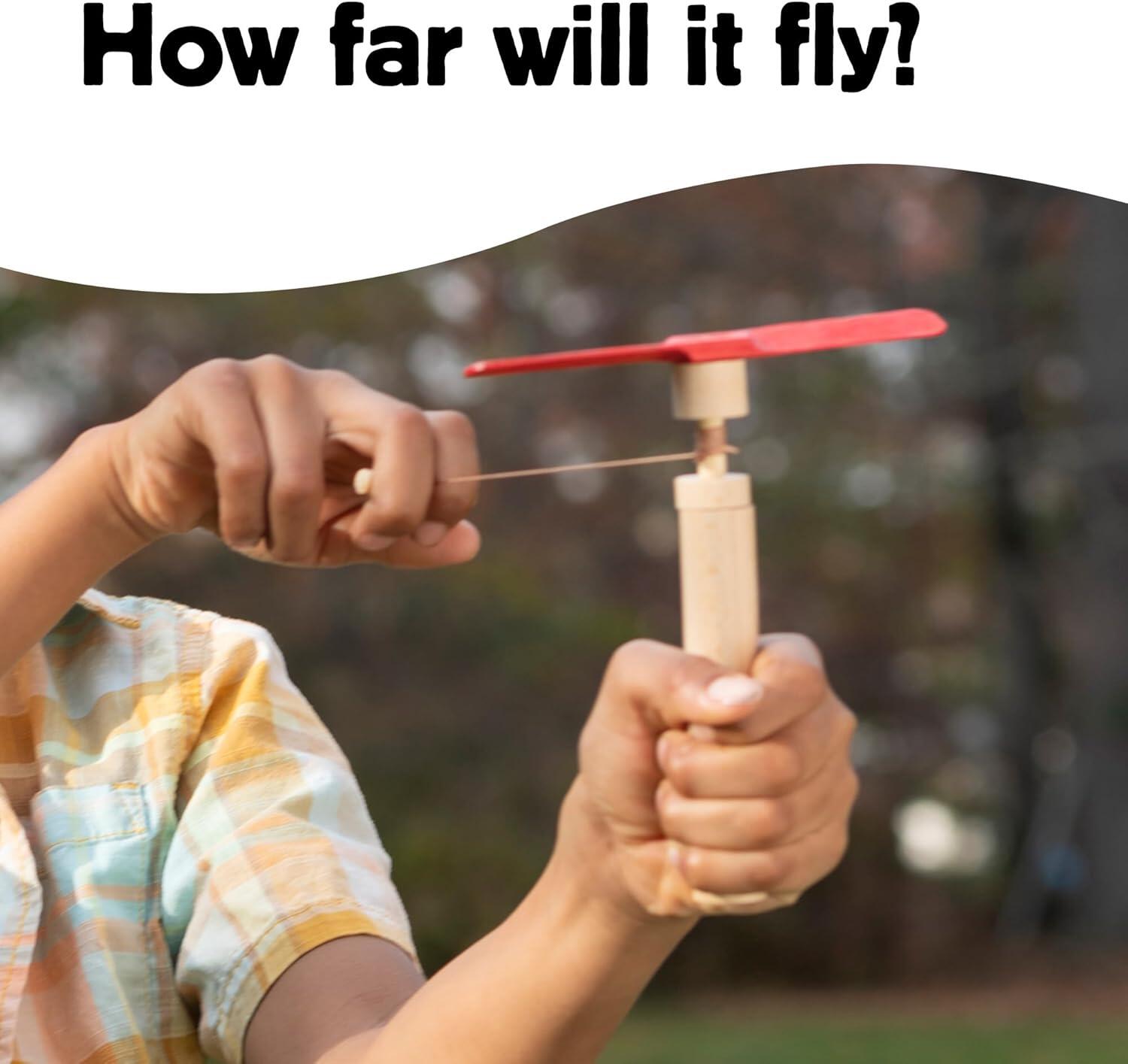 Basta caricare il meccanismo ruotando il lanciatore in senso orario e poi tirare rapidamente per rilasciare l’elicottero, che partirà subito verso l’alto con un volo sorprendente e divertente.