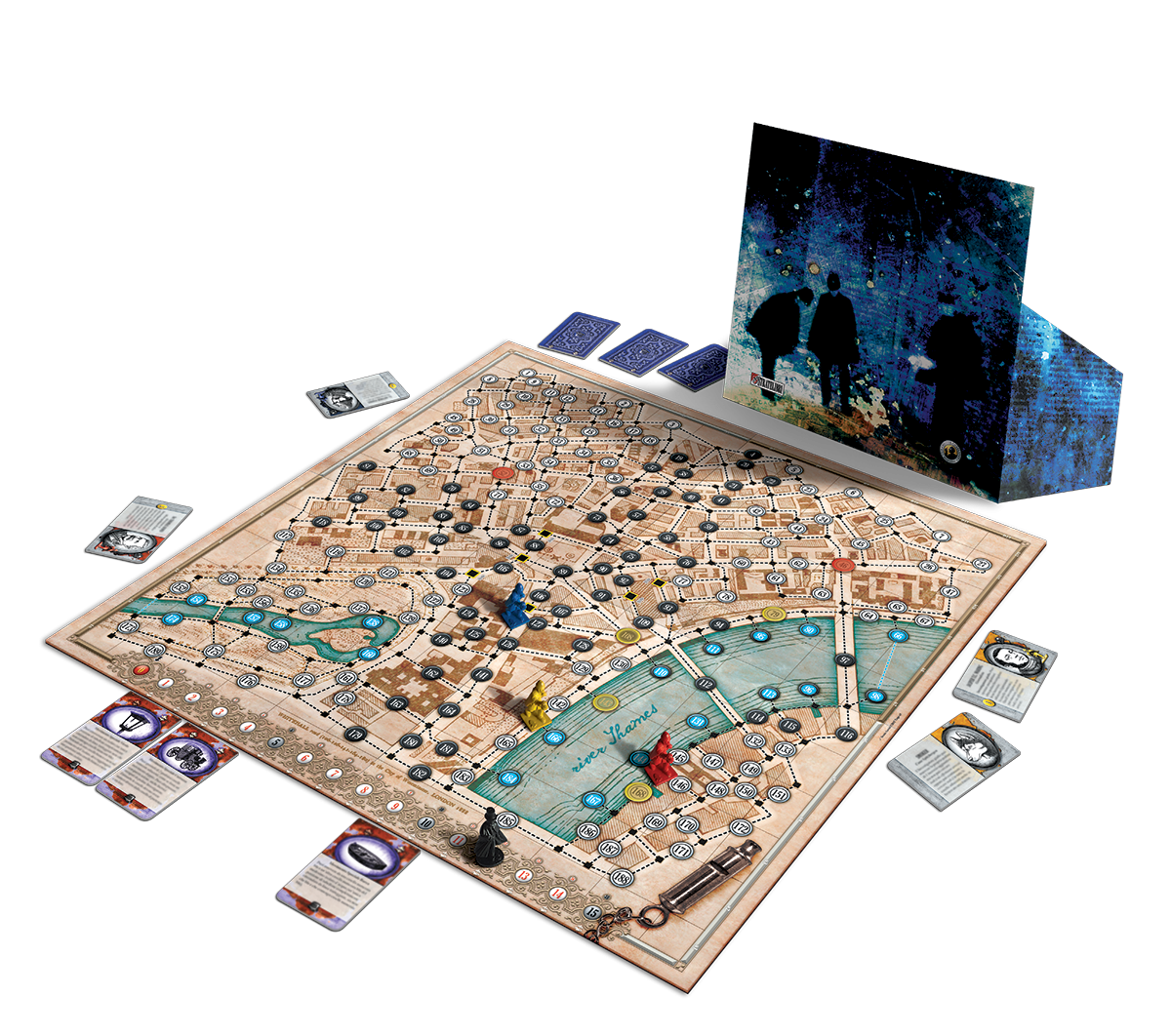 Il tabellone di gioco mostra il quartiere di Whitehall ai tempi di Jack the Ripper. Lungo le sue linee tratteggiate si muovono Jack e i 3 Investigatori che pattugliano il quartiere. La partita si svolge in un’unica caccia composta da tre manches; ogni manche consente a Jack un massimo di quindici mosse.