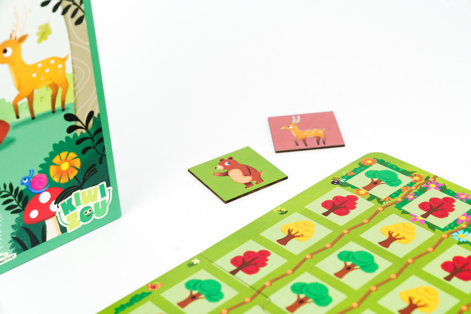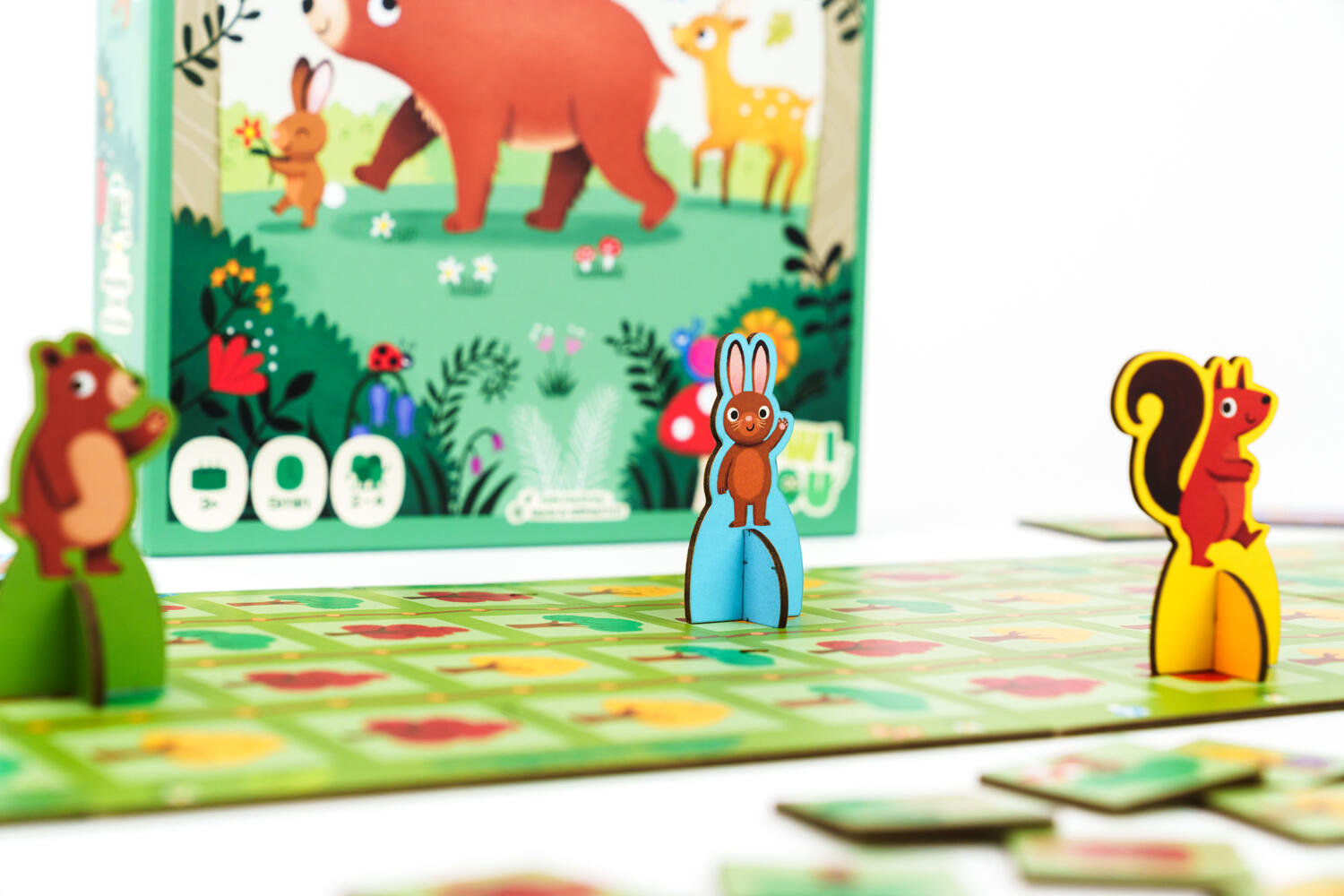 L’autunno ha dipinto il bosco di splendidi colori: è il momento ideale per una gara di corsa! Gli animaletti procedono albero dopo albero più o meno velocemente. Però sono tutti dei gran ghiottoni e non riescono a resistere alle leccornie che incontrano, quindi la corsa viene continuamente interrotta per fare degli spuntini...