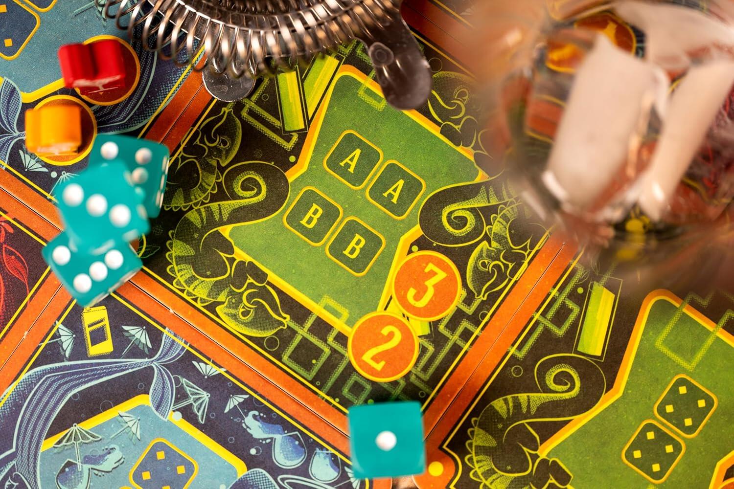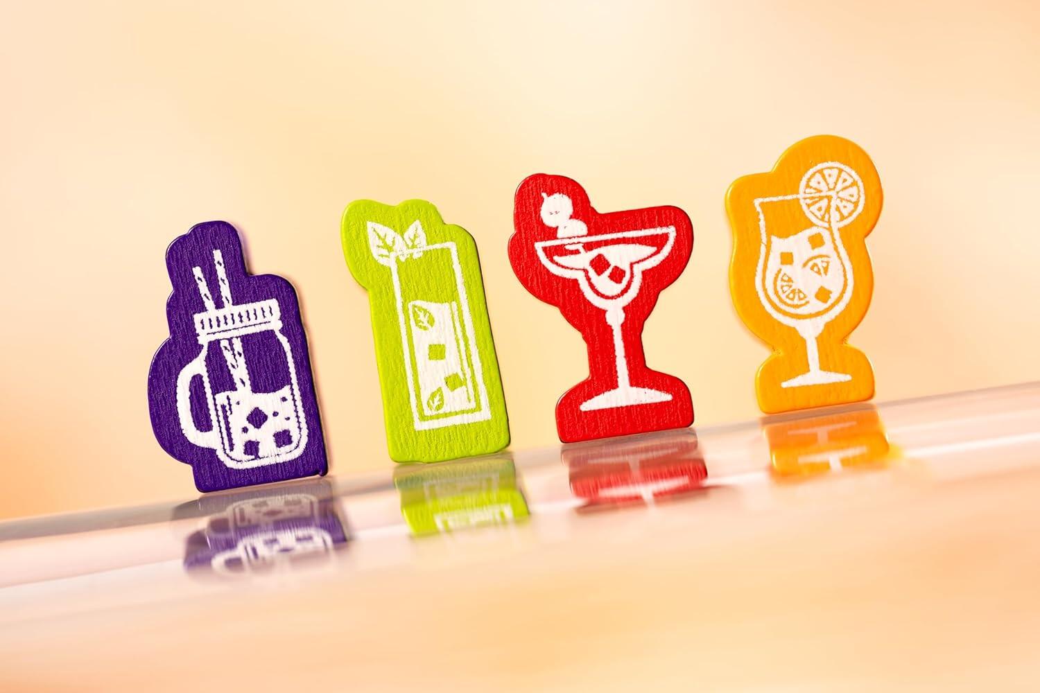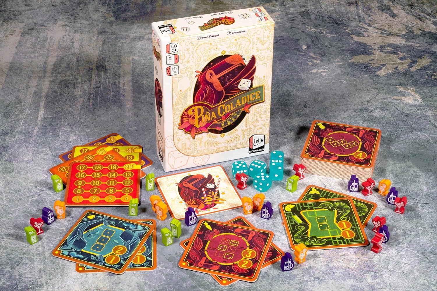 Piña Coladice è un divertente party game per famiglie, in cui i giocatori lanciano i dadi fino a tre volte per ottenere le combinazioni desiderate sui sottobicchieri. Posiziona con astuzia i tuoi gettoni cocktail prima degli avversari e accumula punti preziosi, oppure punta alla vittoria immediata: allinea 4 gettoni cocktail per creare la famosa Piña Coladice e trionfare!