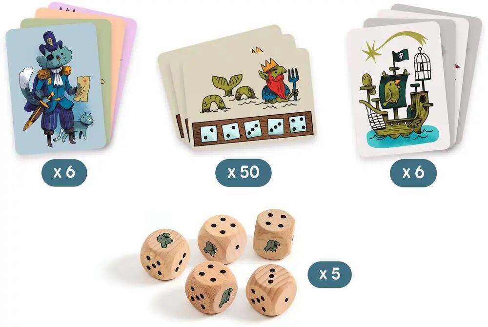 Parti per un'avventura emozionante con il gioco di dadi Pirates'n'dice di Djeco! In questo gioco di sfida e fortuna, gli apprendisti pirati si sfidano per vincere il tesoro più ricco. Lancia i dadi, affronta sfide audaci o scommetti sul successo dei tuoi avversari per accumulare monete d'oro. Un gioco veloce, divertente e strategico che promette partite piene di suspense e risate, da condividere con la famiglia o gli amici!