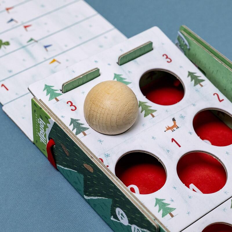Whoooosh! Salite sulla slitta e scendete lungo il pendio! Lanciate il dado a forma di palla, muovete i vostri pezzi e completate le azioni del trifoglio. Chi raggiungerà per primo il traguardo?