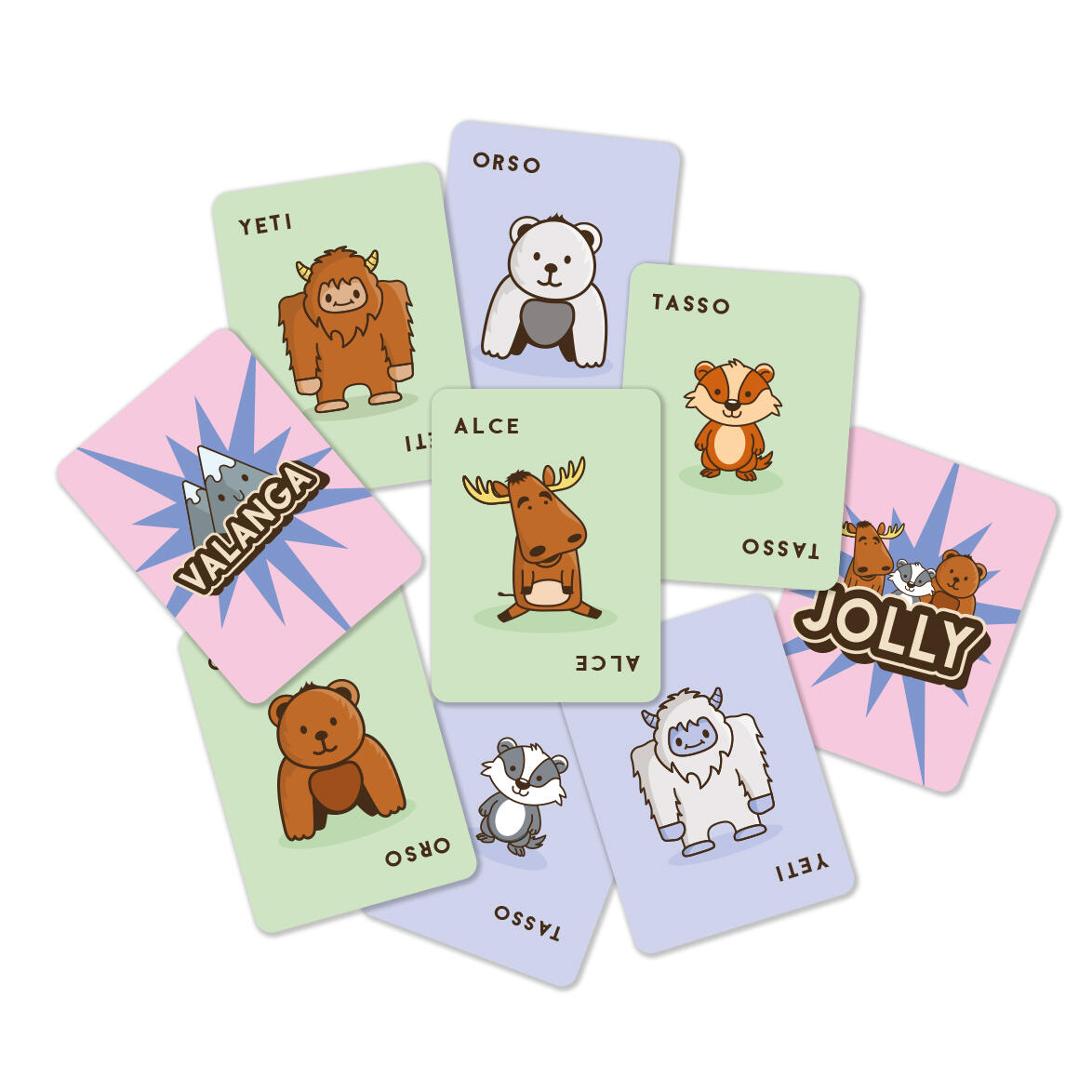 Alce Tasso Che Fracasso è un party game di velocità che coinvolgerà amici e familiari. Tutti i giocatori prendono una carta coperta e recitano contemporaneamente “Alce, tasso, che fracasso!”. A “che fracasso” gira a faccia in su la tua carta. Prendi in fretta una carta dal tavolo che si abbina meglio alle tue e cerca di comporre dei set di animali abbinati. Fai attenzione a Yeti e Valanghe perché ti penalizzeranno! Sii il più veloce e vinci!