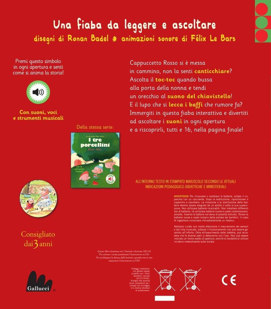 Ascolta il toc-toc quando bussa alla porta della nonna e tendi un orecchio al suono del chiavistello! E il lupo che si lecca i baffi che rumore fa?