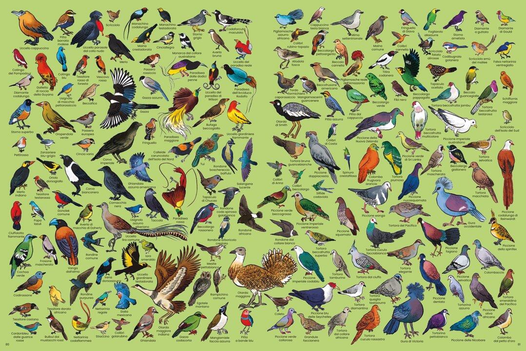 Un bestiario illustrato di grande formato, con più di 2500 specie raccolte per famiglie e disegnate nei minimi particolari.Insetti, felini, pesci, cetacei, serpenti… Ogni animale è affiancato dal proprio nome, per facilitarne il riconoscimento.Un libro imperdibile per tutti i bambini (e gli adulti) amanti della natura, desiderosi di vagabondare con lo sguardo e l’immaginazione nell’incredibile varietà della fauna di tutto il mondo!