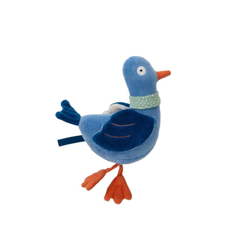 Michel il Piccione è un compagno dolce e giocoso, ideale per accompagnare la crescita e lo sviluppo sensoriale dei neonati.